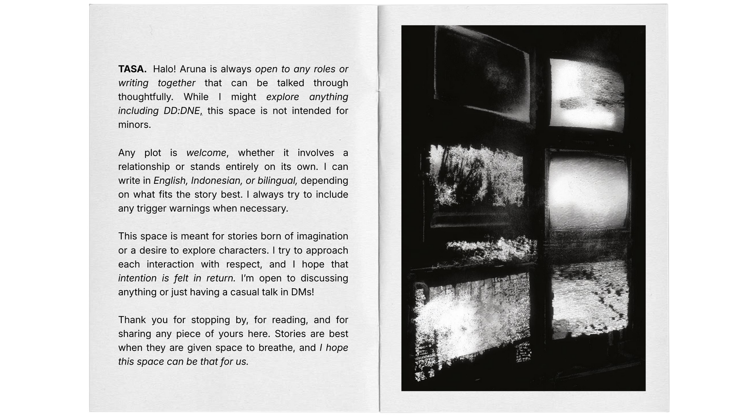 Born on 2 March 1996 in Leiden, Aruna Maartje Atmadja was raised in a family that valued stability more than emotional expression. Her father, Hendrik Maarten Atmadja, a Dutch corporate executive, believed structure and long-term planning were essential to a good life. Her mother, Harun Elisabeth Hartono, Indonesian with European ties, showed care through action rather than conversation. So Aruna grew up supported in material ways, but rarely reassured emotionally.Tension surfaced when Aruna rejected the career path her parents had mapped out for her and chose to study film instead. The disagreement was never loud or confrontational, but it permanently altered the family dynamic. Support remained, though it became formal and distant. However, her relationship with her younger brother, Arya Matthias Atmadja, stayed; he became the person she trusted the most.Aruna studied Film Art at Paris College of Art. Her academic focus leaned toward cinema theory, cultural criticism, and narrative analysis rather than production. After graduating, she chose to live in Indonesia, drawn to its pace, contradictions, and immediacy. She now works as an international film critic and cultural commentator, attending film festivals across the world while maintaining her base in Jakarta.Alongside her work in film criticism, Aruna occasionally models and collaborates as an influencer, primarily aligned with her travel, festival presence, and personal interests. Outside of work, she cooks as a way to decompress, preferring routines that keep her grounded. She leads a largely self-contained life.To Aruna, home exists everywhere, and forever is a feeling rather than a promise. She is drawn to learning languages, believing that no language can ever be fully translated into another. And that not everything needs to be understood. Some things, she accepts, are best observed from the sidelines.